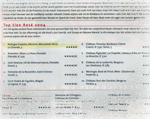 Tot die tijd moet u het doen met onze andere rosé's .... Dat moet ook geen straf zijn, want een groot aantal heeft bijzonder goede kritieken gekregen van het proefpanel. Zelfs onze eenvoudigste (lees voordeligste) rosé's kwamen er heel goed af. Hieronder het complete lijstje + letterlijke omschrijving en waardering: